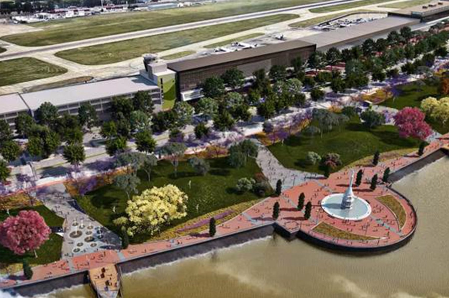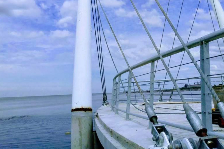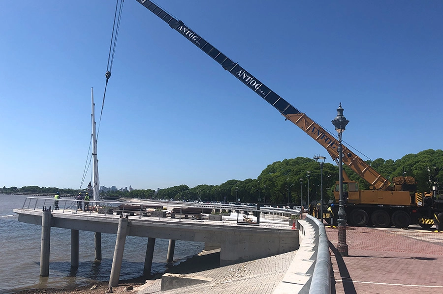 En el Paseo de la Costanera se reubico el Monumento a Cristóbal Colón, se construyeron 5 Espigones simulando proas de barcos, sobre ellos realizamos mástiles de gran porte con tensores de acero y la totalidad de las barandas del borde costero con un acabado galvanizado, más barandas y carpinterías del estacionamiento subterráneo.