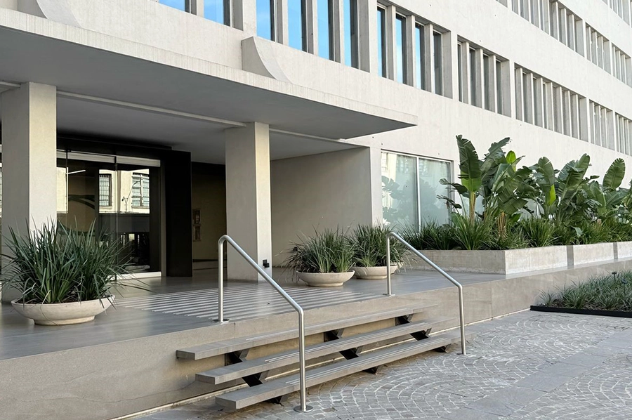 Ubicado sobre el nuevo Paseo del Bajo y conformando la proa de Puerto Madero, conjuga tres edificios diferentes y un paseo comercial que se complementan entre sí: Realizamos herrerías varias que comprenden torretas, zócalos, frentes de ascensor, pérgolas en terraza, barandas y maceteros.