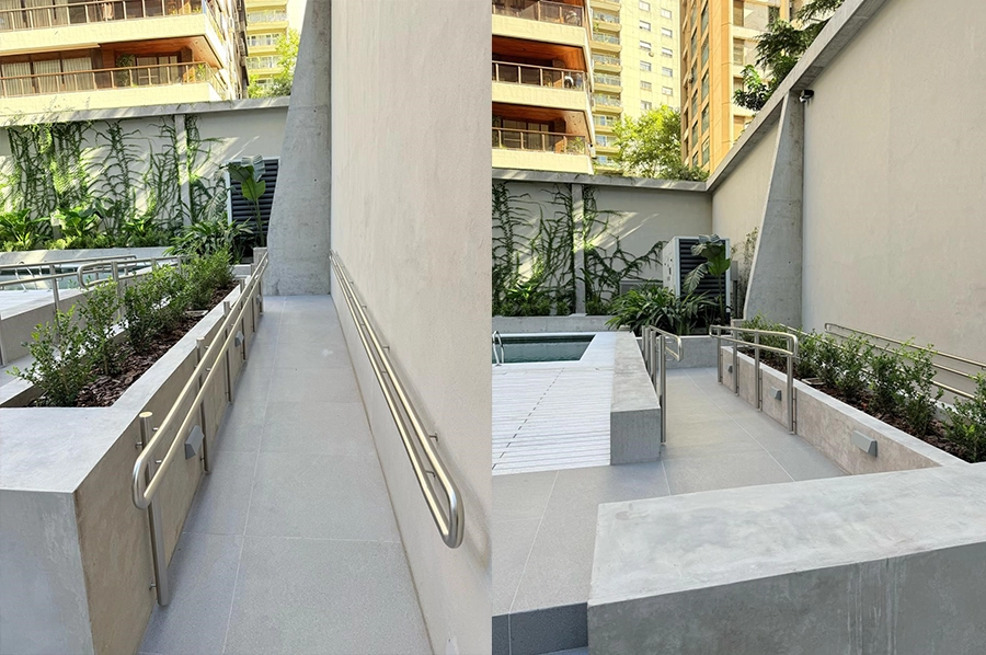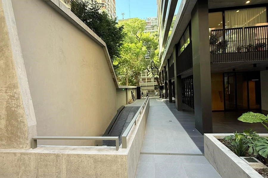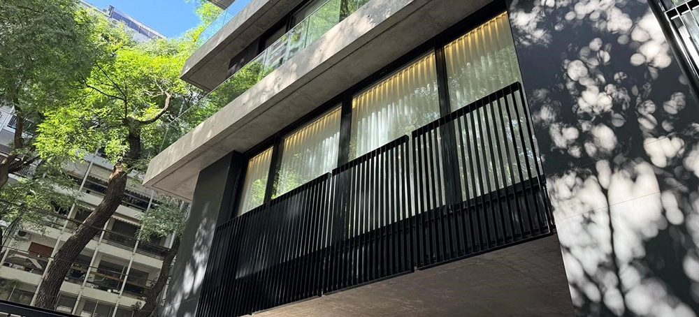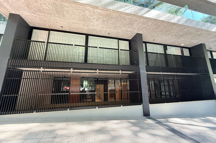 Exclusiva torre de 15 pisos residenciales, ubicada en Belgrano - CABA donde realizamos provisión y montaje de portón peatonal y vehicular de ingreso, barandas de balcones, rejas perimetrales, pasamanos de hierro de escaleras en interior y pasamanos de acero inoxidable en exteriores para ingreso a sector de amenities, puertas de gabinetes, rejas de ventilación, zócalos de acero inoxidable, tapa de acceso a bombas de pileta de ventilación forzada, entre muchas otras cosas.